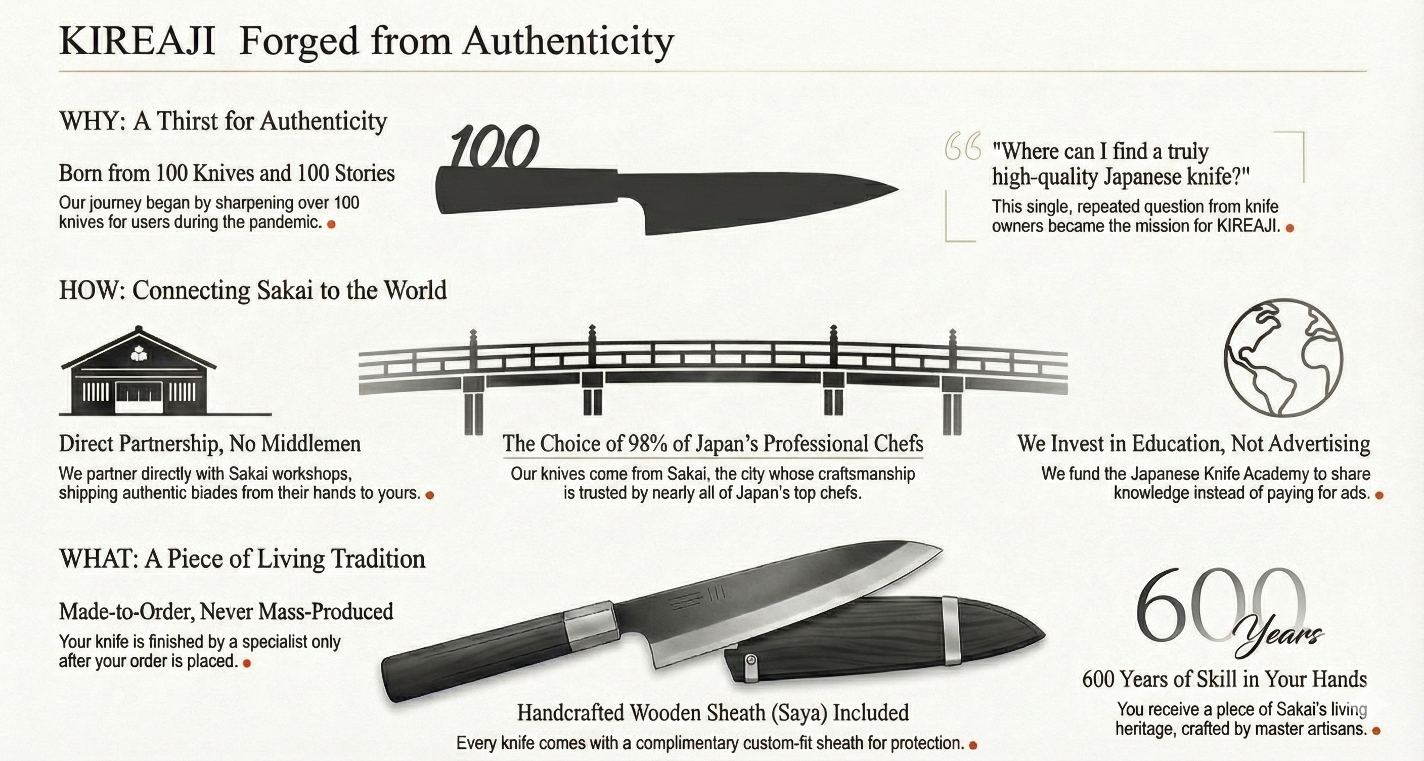 KIREAJI began with a simple truth: people were searching for real Japanese knives.
