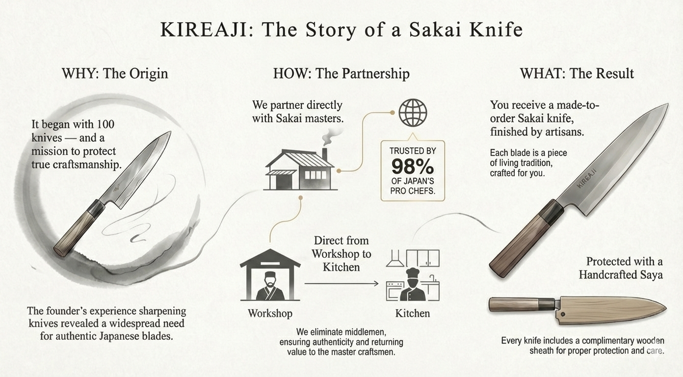 At KIREAJI, every blade is born from centuries of Sakai craftsmanship, designed to serve you for a lifetime.