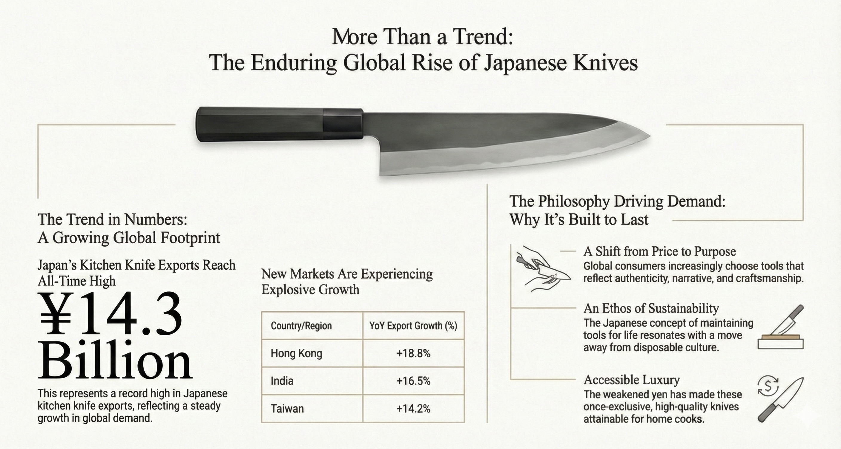 Japanese knives are not riding a temporary trend—they are becoming a global standard, driven by authenticity, sustainability, and craftsmanship.