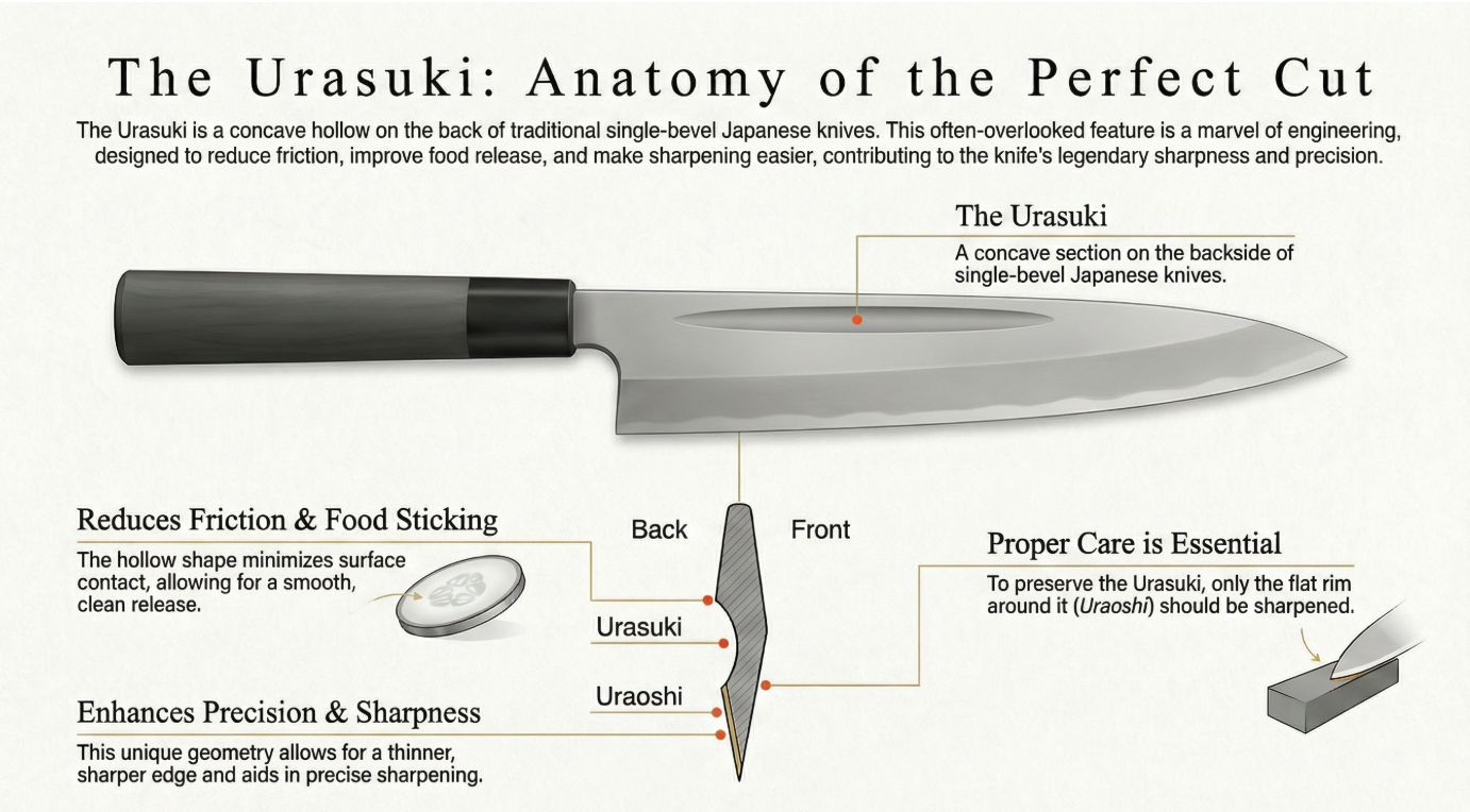 • The urasuki is one of the most important—and least understood—elements of a traditional single-bevel Japanese knife.