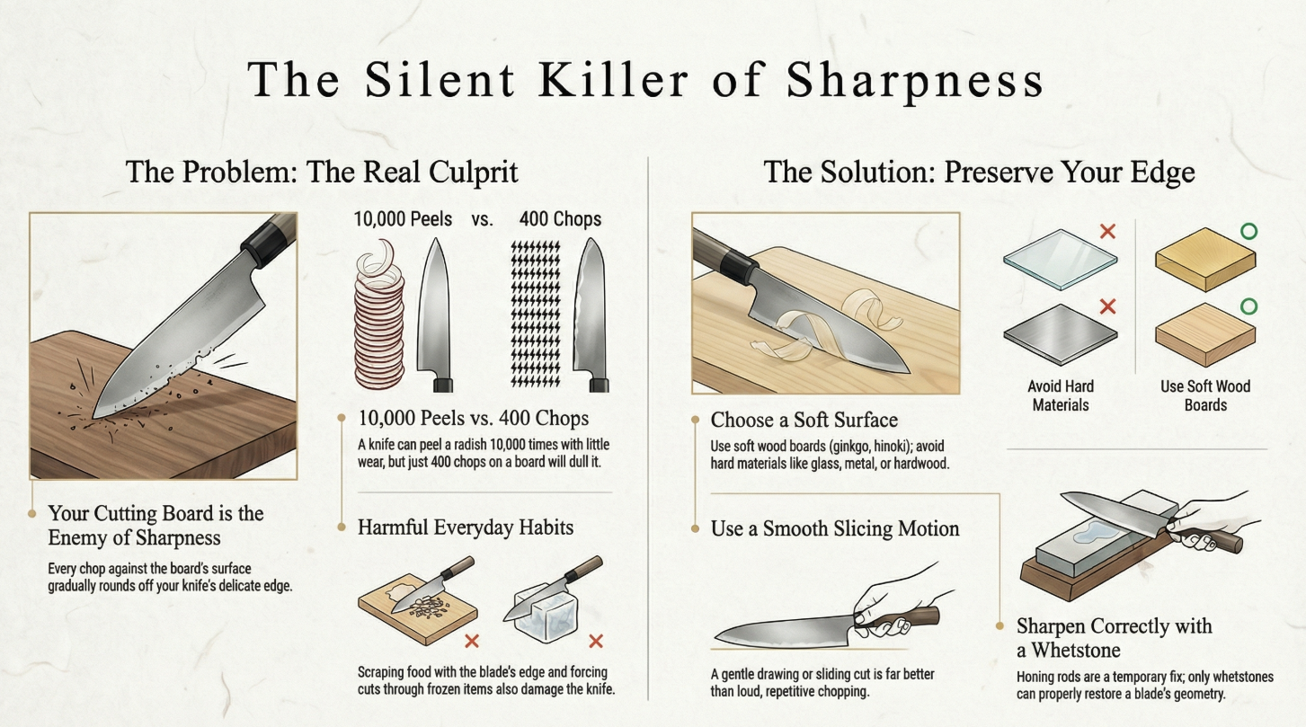 The Hidden Enemy of Knife Sharpness: How Cutting Boards and Habits Destroy Your Edge