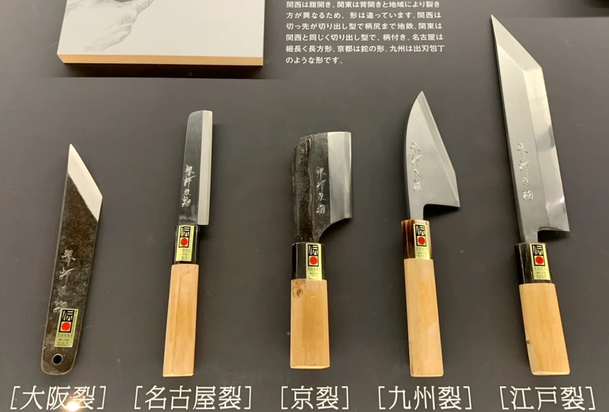 Kyoto, meanwhile, uses a form that resembles a small Chinese cleaver, versatile enough to handle eel and other fish alike—an expression of the city’s refined but practical culinary culture.