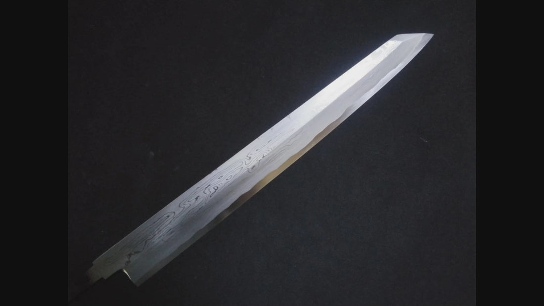 Wihte Steel #2 Damascus Yanagiba (Sakimaru) 300mm- Mirror Polished Blur Finish