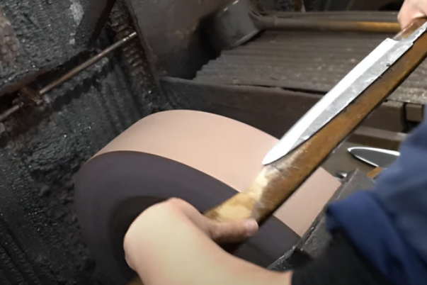 Recognized as a Traditional Craftsman in 1988, Nomura is among the few sharpeners to hold this prestigious title, reflecting his role as a guardian of Sakai’s centuries-old knife-making tradition.