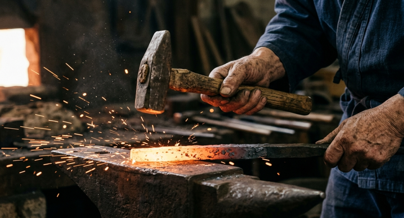 This is not a demonstration. It is participation. The participant works the metal. They feel the resistance of the steel under the hammer. They experience the transformation of heat on the material — the way it moves differently at different temperatures, the way the color of the metal tells you something about what it is doing and what it needs. These are not things that can be learned from watching. They are things that can only be understood by doing.