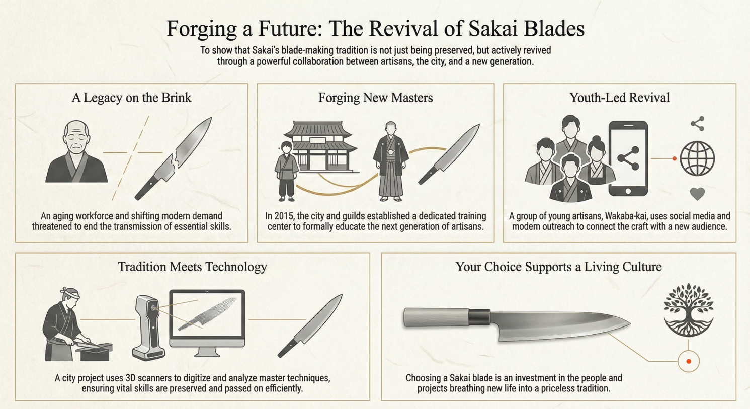 Sakai’s revival is driven by new artisans, digital preservation, and a growing global community that values true craftsmanship.