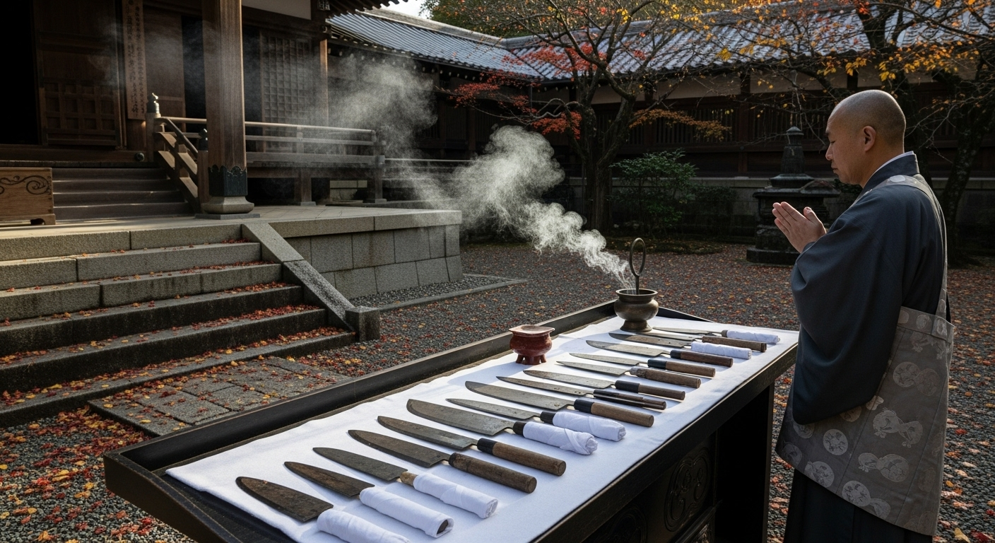 Au Japon, même l'outil le plus ordinaire peut être perçu comme porteur d'une âme. Un couteau de cuisine est plus que de l'acier : il conserve le souvenir d'innombrables repas et des soins prodigués par son propriétaire. Lorsqu'il prend fin, il n'est pas simplement jeté, mais honoré avec respect.