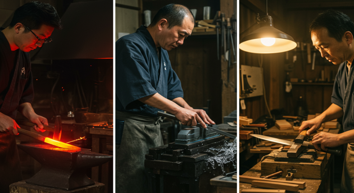 Chaque couteau KIREAJI est façonné non pas par des machines, mais par des artisans perpétuant un savoir-faire séculaire. -