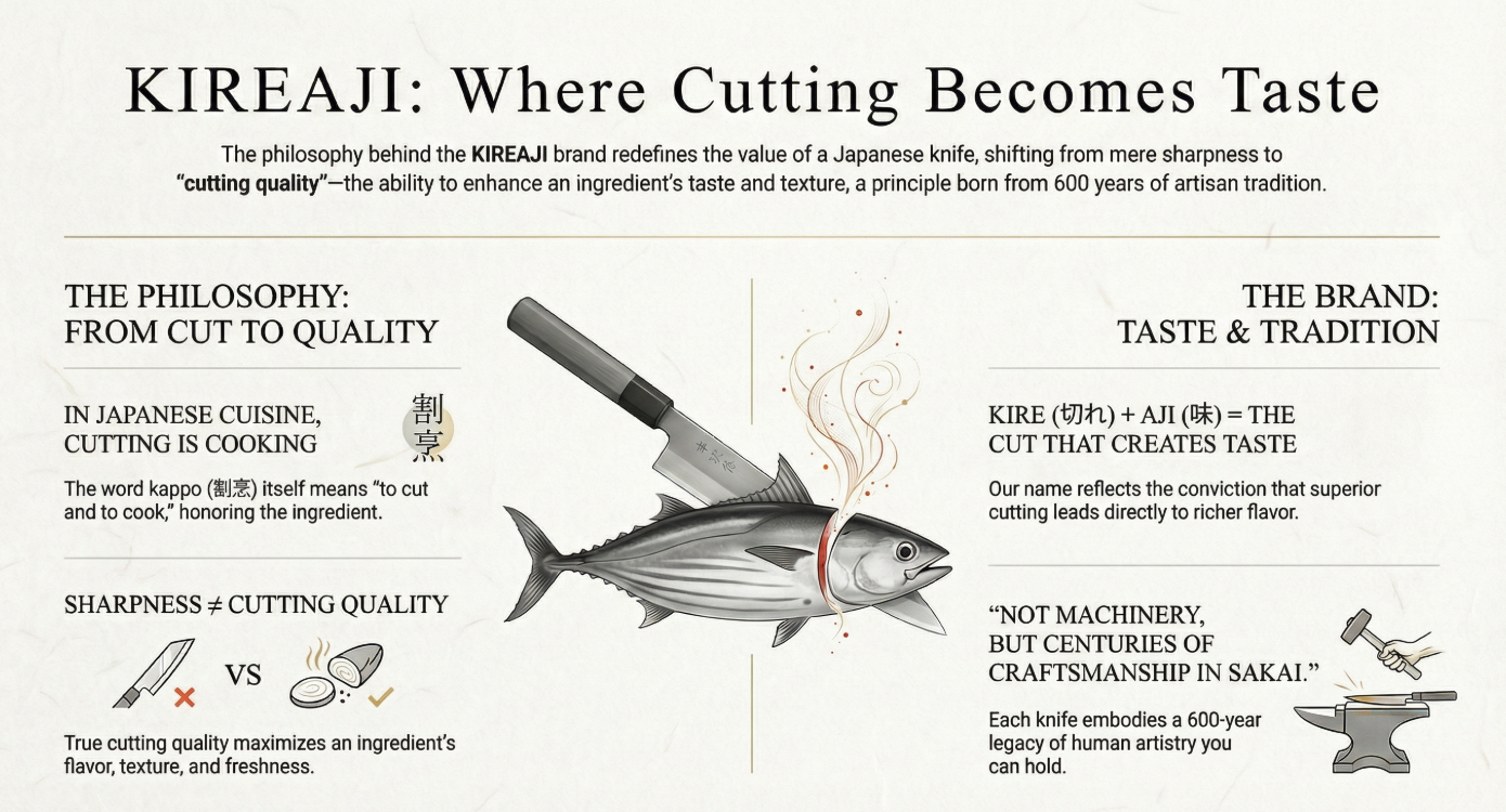 Chez KIREAJI, chaque lame est née de siècles d'artisanat Sakai, conçue pour vous servir toute votre vie.