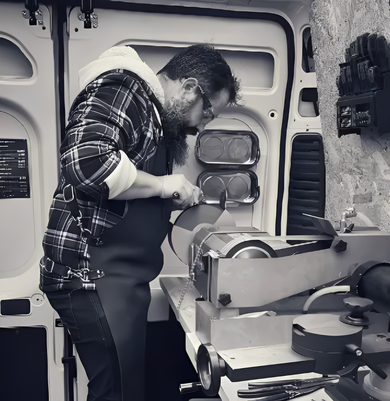 Serving both professionals and private clients through a mobile workshop