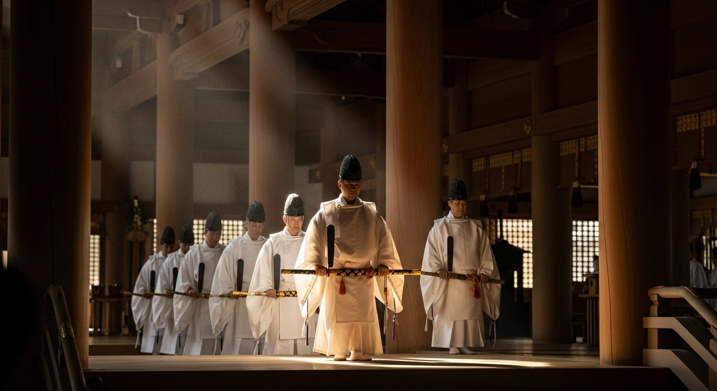 At the Shikinen Sengu of Ise Grand Shrine, held every 20 years, a ceremonial sword called the Ōtachi is offered to the deities, reaffirming the blade’s spiritual significance.