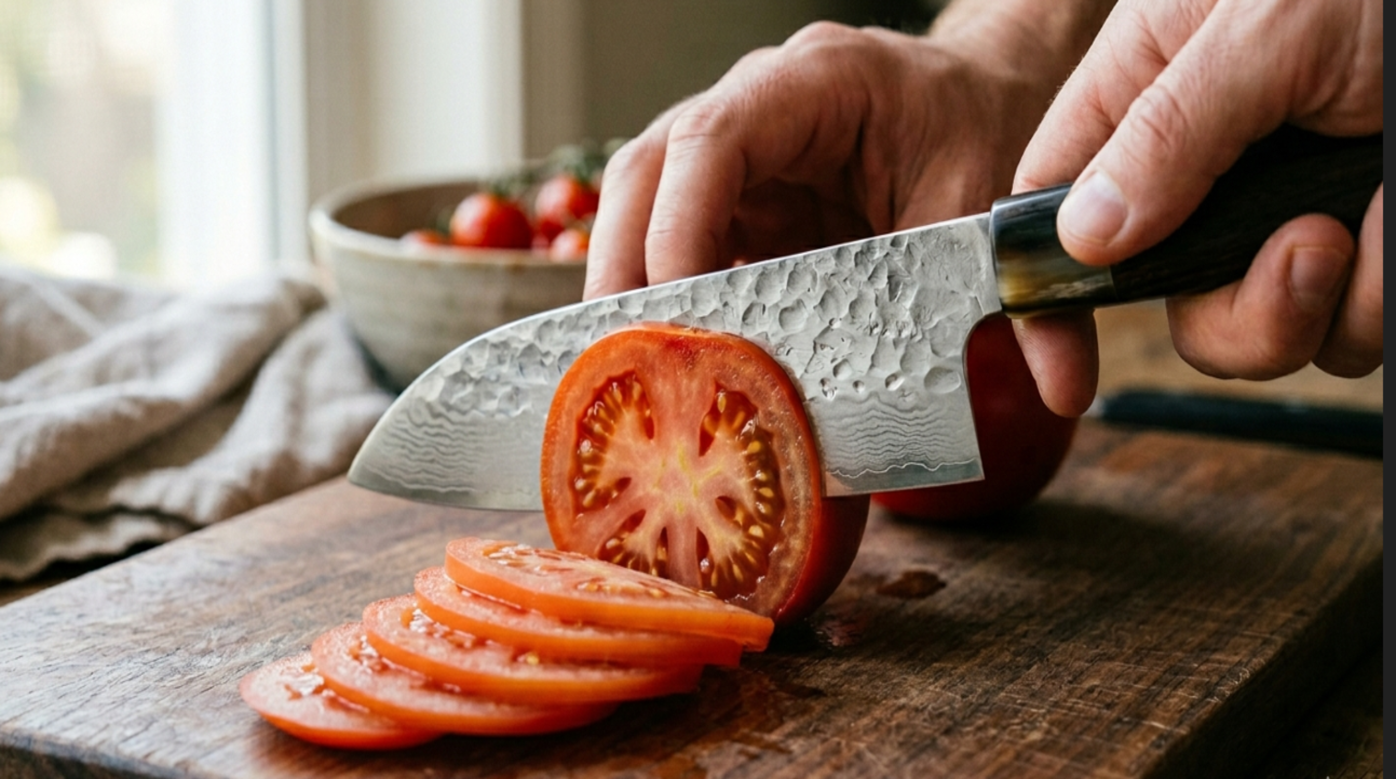 毫不妥协的锋利。- 切西红柿,不要释放多余的水分