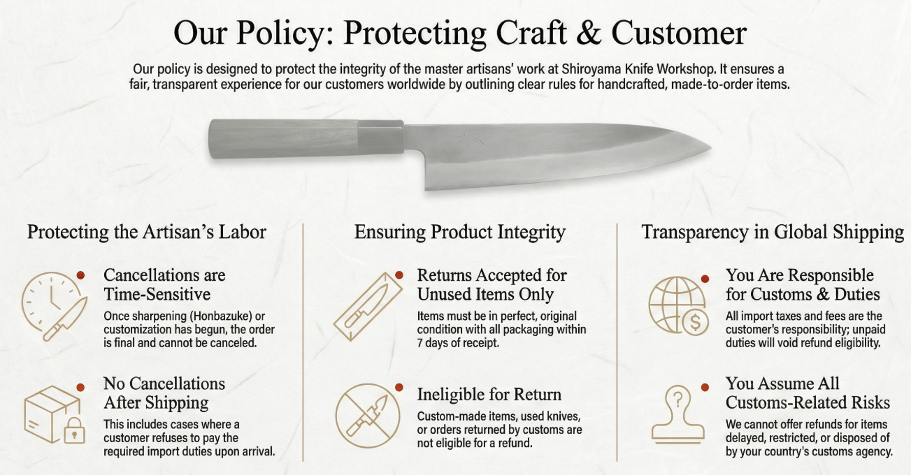 KIREAJI 刀不仅仅是一件工具,更是您一生的伴侣。我们提供定制的付费售后服务,以维护其锋利和美观,确保它始终如初,精准可靠,如同初次接触您的手。