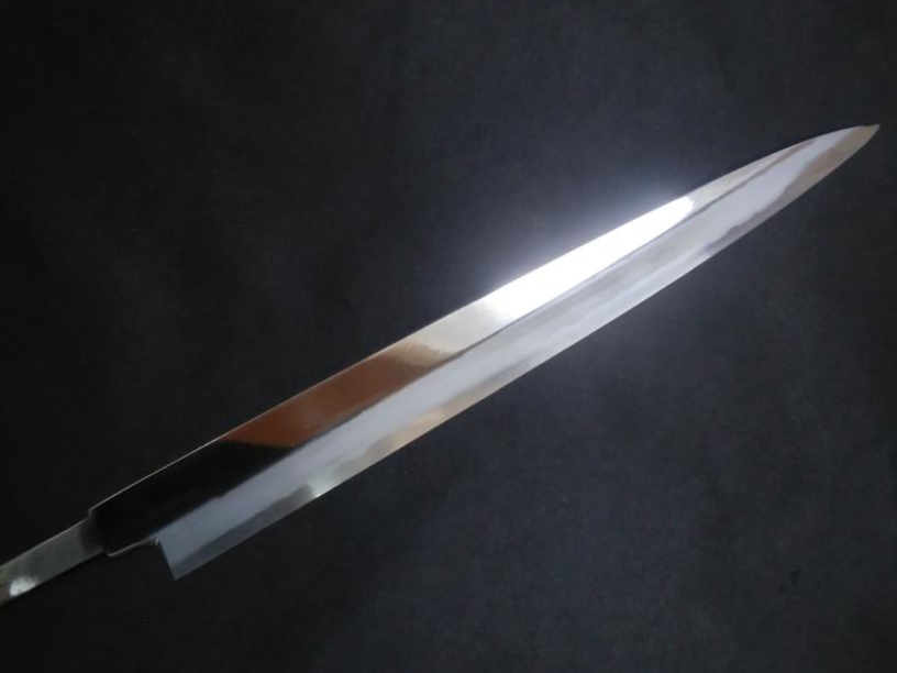 YOUTUBE 上的一个日本料理技术频道展示了一把超钢、优质磨光的柳叶刀。视频中出现的人居然用过柳叶刀,还评价它的锋利度。他称赞它的锋利“像剃须刀片”。