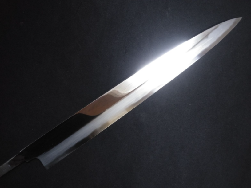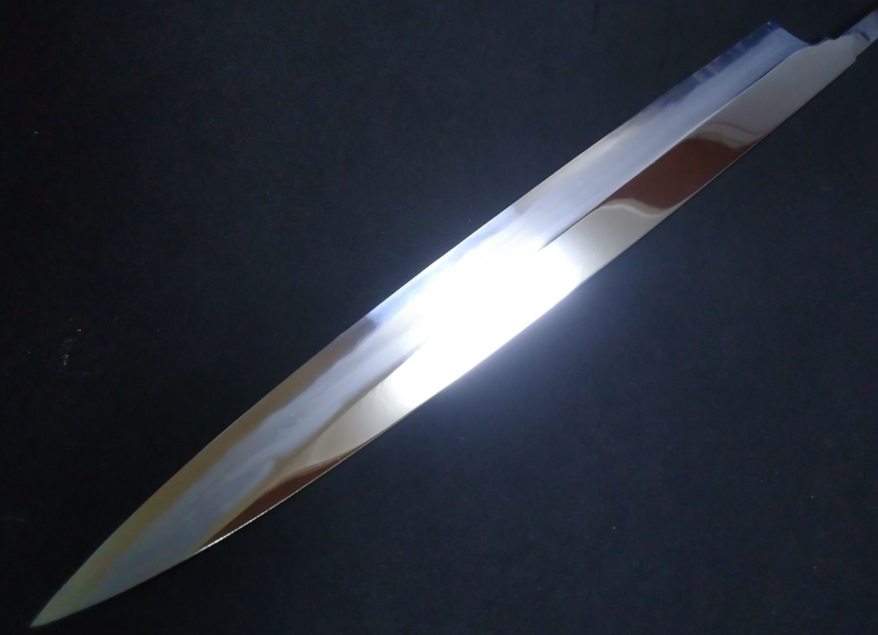 YOUTUBE 上的一个日本料理技术频道展示了一把超钢、优质磨光的柳叶刀。视频中出现的人居然用过柳叶刀,还评价它的锋利度。他称赞它的锋利“像剃须刀片”。