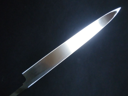 这款独特的柳刃由资深铁匠山塚翔吾 (Shogo Yamatsuka) 打造,并由其儿子山塚耕平 (Kohei) 或工匠山塚忠义 (Tadayoshi Yamatsuka) 进行镜面抛光。