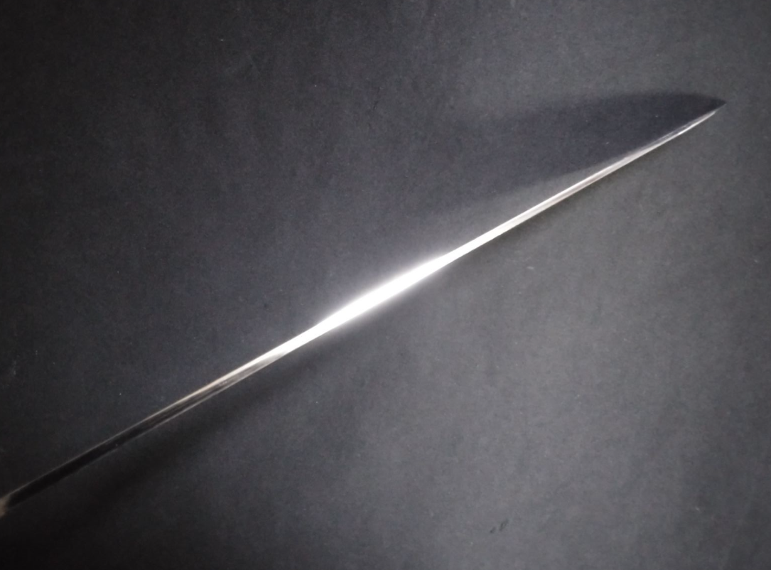 双面镜面处理。所有磨刀均由传统工匠 Tadayoshi Yamatsuka 完成。山冢先生的镜面加工据说是大阪堺市最好的。